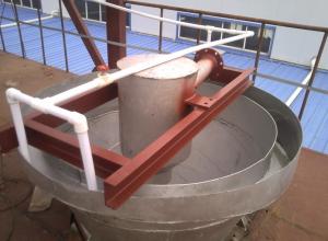 硅砂、石英砂料漿(濃度60%~~75%)進(jìn)入擦洗機(jī)內(nèi),通過(guò)攪拌葉的強(qiáng)制攪動(dòng),物料在攪拌機(jī)內(nèi)做圓周、上下翻滾運(yùn)動(dòng),物料與物料之間碰撞摩擦,使物料表面粘附的雜質(zhì)及氧化鐵脫落,物料棱角光滑,達(dá)到物料純凈的效果,提高物料的純度。